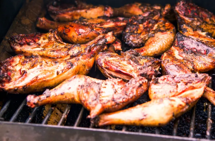 Flavor/Texture: Bright, garlicky, smoky; juicy thigh or breast.